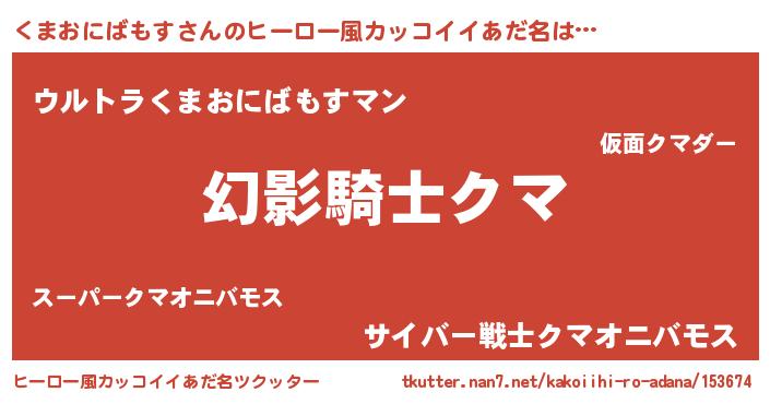 | 男性向けラノベタイトル風あだ名 | 『くまおにばもすの嫁は女の子じゃないと思った?』 |