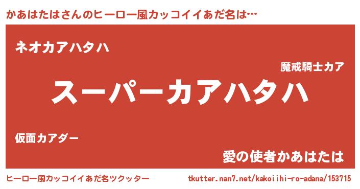 | 男性向けラノベタイトル風あだ名 | 『かあはたはの憂鬱』『緋弾のカアハタハ』 |