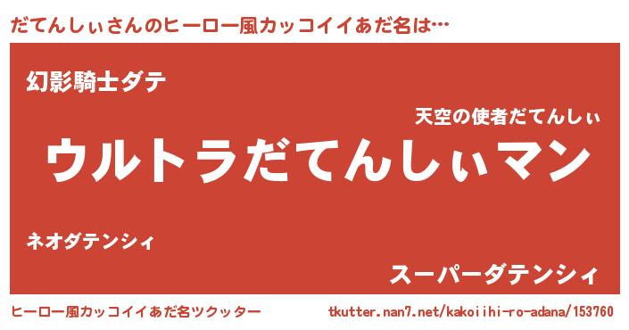 | 男性向けラノベタイトル風あだ名 | 『転生したらだてんしぃだった件』 |