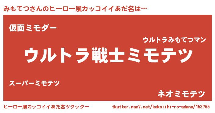 | 男性向けラノベタイトル風あだ名 | 『ミモテツスレイヤー』 |