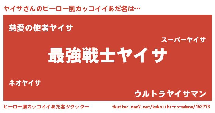 | 男性向けラノベタイトル風あだ名 | 『Re:ヤイサから始める異世界生活』 |