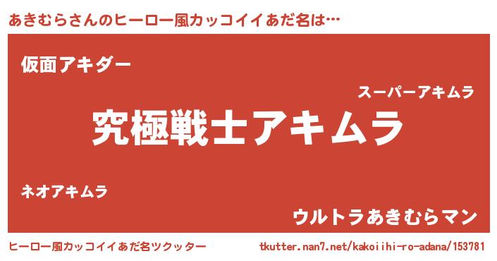 | 女子向けラノベタイトル風あだ名 | 『あきむらストレイドッグス』 |