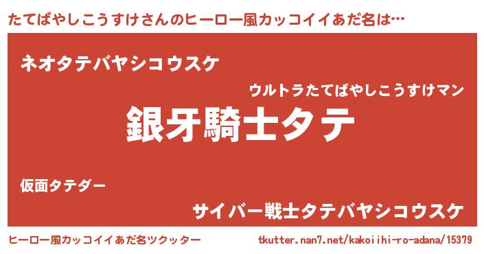 | 男性向けラノベタイトル風あだ名 | 『たてばやしこうすけの嫁は女の子じゃないと思った?』 |