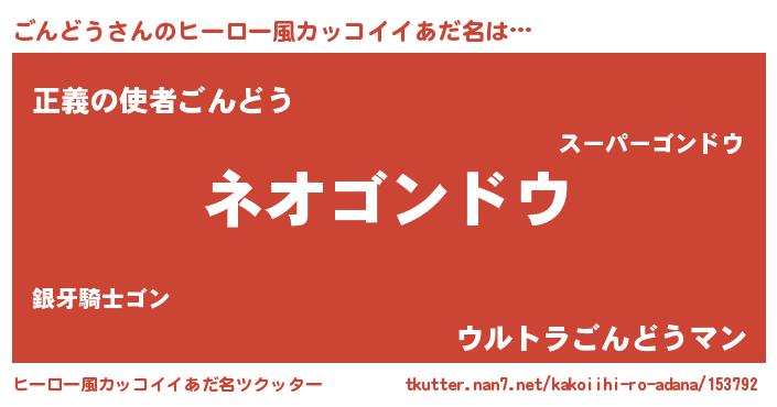 | 意味不明あだ名 | 『永久保存ごんどう』『ペロリンごんどう』 |