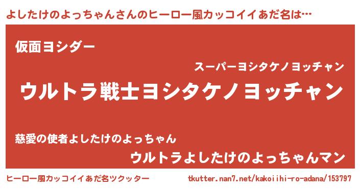 | 女子向けラノベタイトル風あだ名 | 『よしたけのよっちゃんなんてお断りですっ。』 |