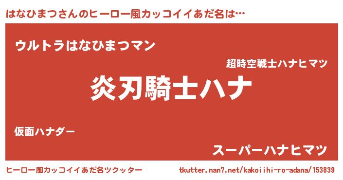 | ポケモン風あだ名 | 『ヒハナヒマツ』『ハナゴンZ』 |
