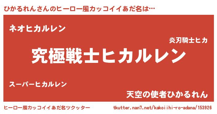 | 男性向けラノベタイトル風あだ名 | 『Re:ひかるれんから始める異世界生活』 |