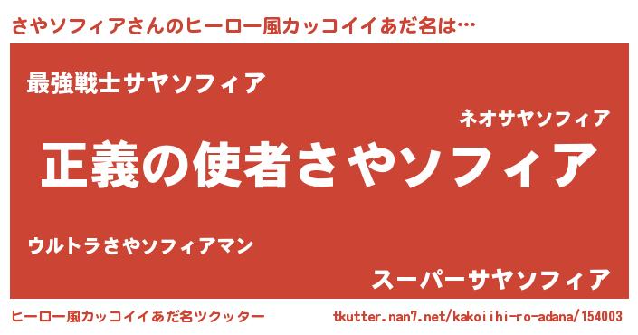 | 意味不明あだ名 | 『眠気覚ましガムさやソフィア味』 |