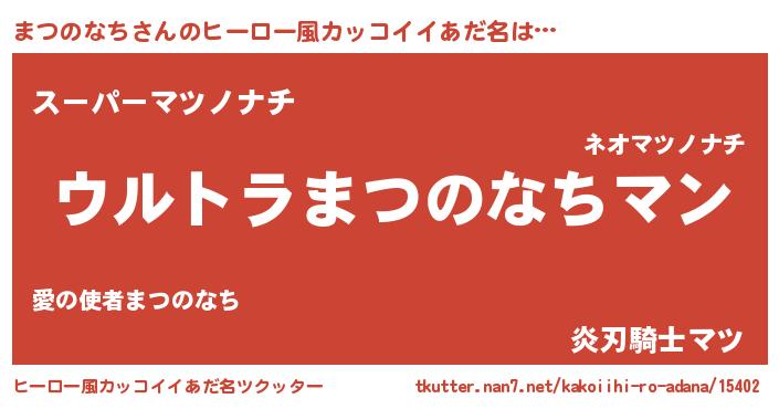 | 男性向けラノベタイトル風あだ名 | 『まつのなち~年齢イコール彼女いない歴の魔法使い~』 |