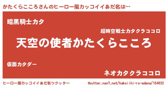 | 伝説のあだ名 | 『救世主となる錬金術士かたくらこころ』 |