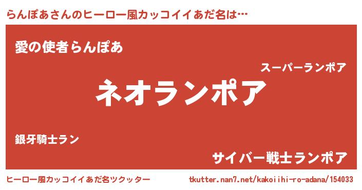 | ヘコむあだ名 | 『らんぽあ(笑)』『らんにゅー』 |