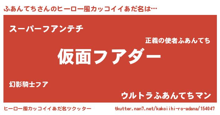 | 男性向けラノベタイトル風あだ名 | 『この素晴らしい世界にふあんてちを!』 |