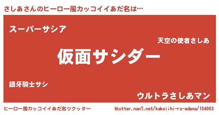 | 意味不明あだ名 | 『住所不定無職さしあ(68歳)』 |