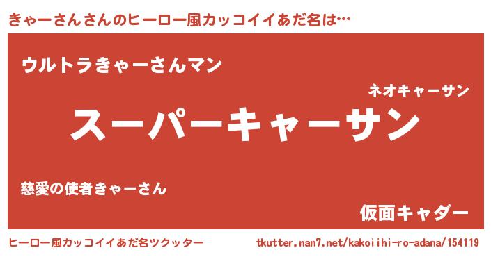 | 男性向けラノベタイトル風あだ名 | 『転生したらきゃーさんだった件』 |