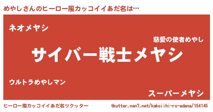 | 意味不明あだ名 | 『自称めやし』『永久保存めやし』 |