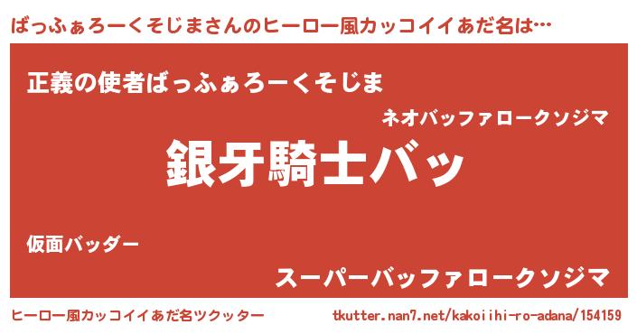 | 男性向けラノベタイトル風あだ名 | 『ダンジョンにばっふぁろーくそじまを求めるのは間違っているだろうか』 |