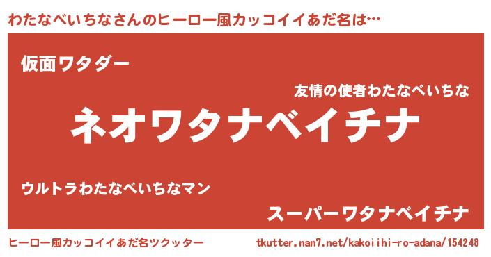 | 男性向けラノベタイトル風あだ名 | 『わたなべいちな~年齢イコール彼女いない歴の魔法使い~』 |