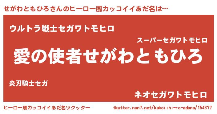 | ヘコむあだ名 | 『せがわともひろ(笑)』『せがにー』 |