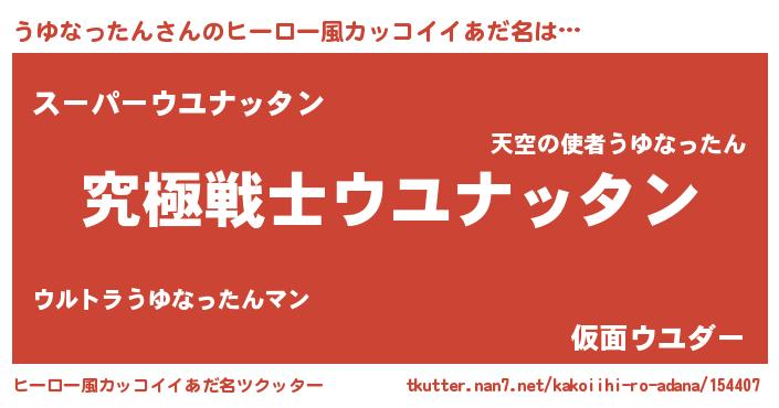 | 男性向けラノベタイトル風あだ名 | 『うゆなったん~年齢イコール彼女いない歴の魔法使い~』 |