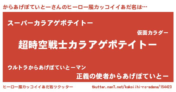 | 意味不明あだ名 | 『自称からあげぽていとー』 |