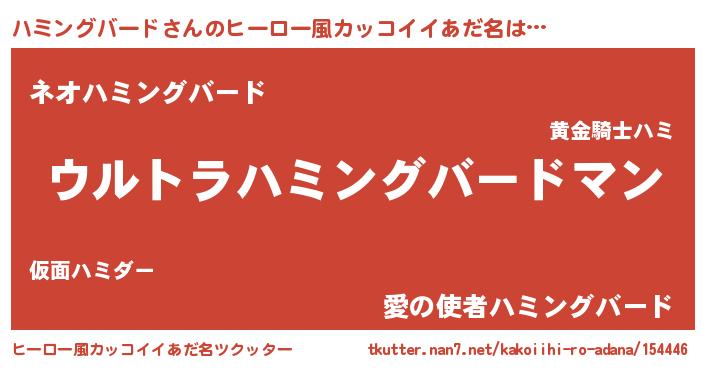 | 男性向けラノベタイトル風あだ名 | 『はたらくハミングバードさま!』 |