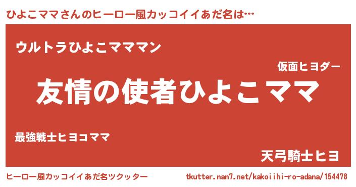 ひよこママさんのヒーロー風カッコイイあだ名をツクッター!