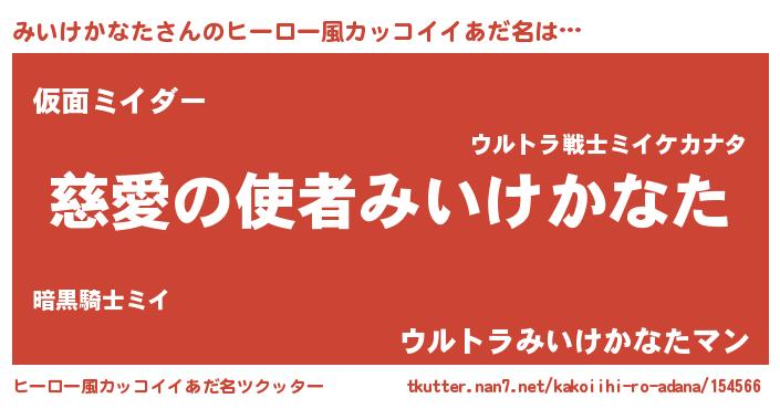 | 男性向けラノベタイトル風あだ名 | 『ノーゲーム・ノーミイケカナタ』 |