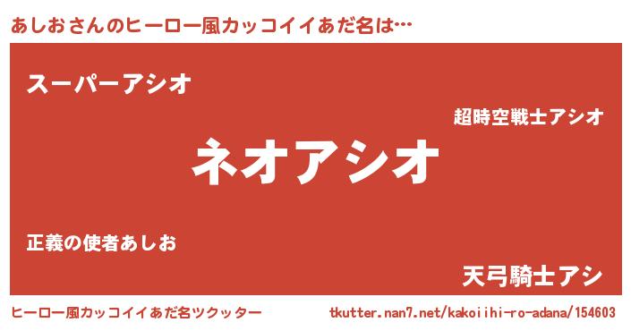 | 男性向けラノベタイトル風あだ名 | 『あしおという概念が存在しない退屈な世界 』 |