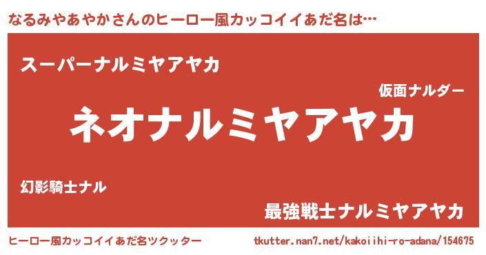 | ヘコむあだ名 | 『なるみやあやか(遠い目)』『なるっふぃ~』 |