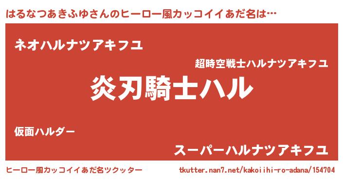 | ポケモン風あだ名 | 『ハルゴンZ』『ヒハルナツアキフユ』 |
