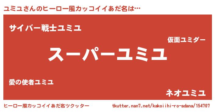 | 胡散臭い通販商品みたいなあだ名 | 『億万長者になれるブレスレット…その名も「ユミユ」』 |
