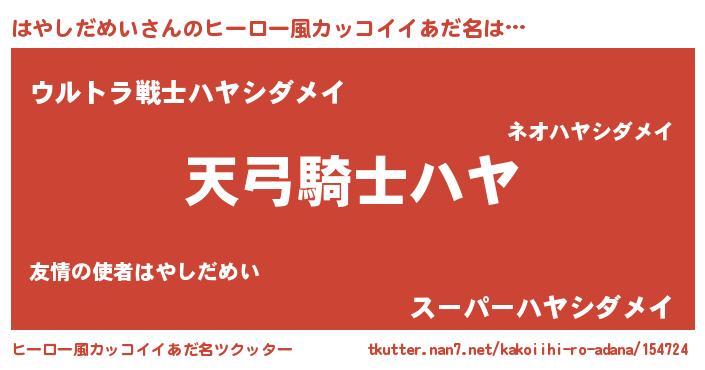 | ポケモン風あだ名 | 『ハヤキング』『ヒハヤシダメイ』 |