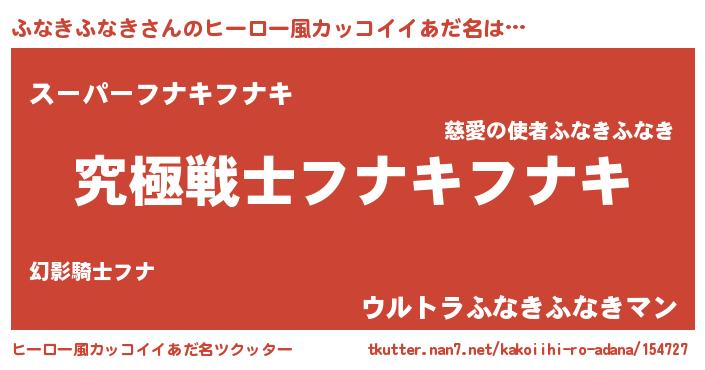 | 男性向けラノベタイトル風あだ名 | 『Re:ふなきふなきから始める異世界生活』 |