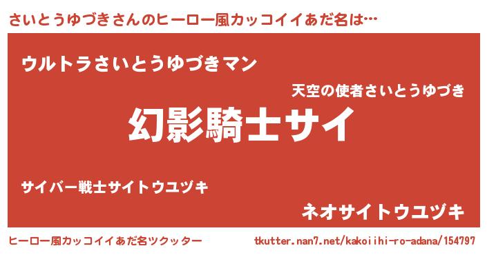 | 男性向けラノベタイトル風あだ名 | 『さいとうゆづきの嫁は女の子じゃないと思った?』 |