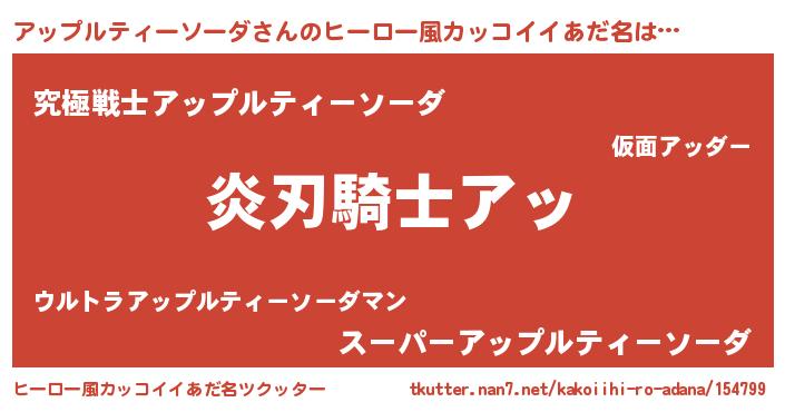 | ポケモン風あだ名 | 『ヒアップルティーソーダ』『アッセウス』 |