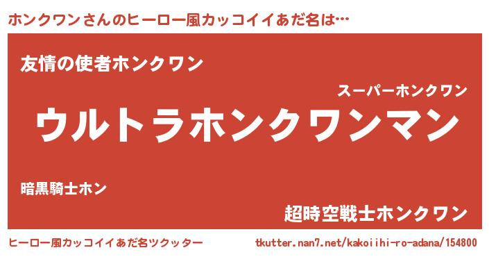 | ファンタジー風あだ名 | 『エターナルホンクワンー』『ゼホントゥ』 |