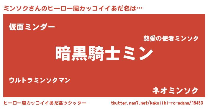 | 胡散臭い通販商品みたいなあだ名 | 『信頼と実績のサプリメント…その名も「ミンソク」』 |