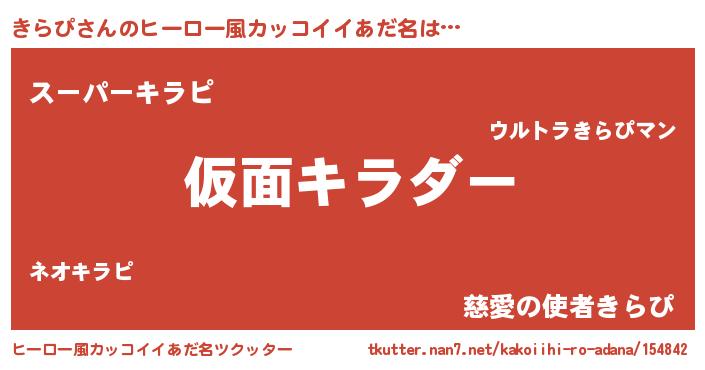 | 男性向けラノベタイトル風あだ名 | 『この素晴らしい世界にきらぴを!』 |