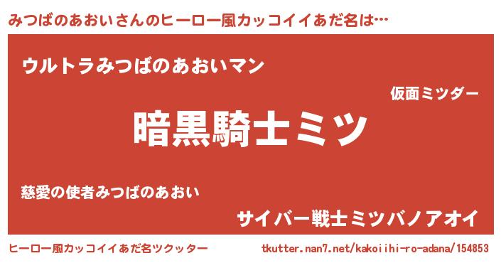 みつばのあおいさんのヒーロー風カッコイイあだ名をツクッター!