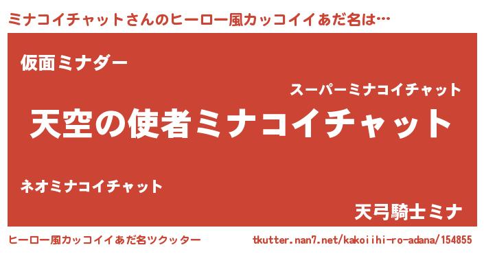 | 伝説のあだ名 | 『救世主となる技術者ミナコイチャット』 |