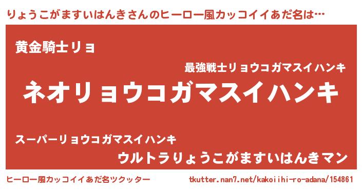 | 意味不明あだ名 | 『永久保存りょうこがますいはんき』 |