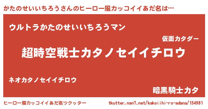| 女子向けラノベタイトル風あだ名 | 『かたのせいいちろうなんてお断りですっ。』 |