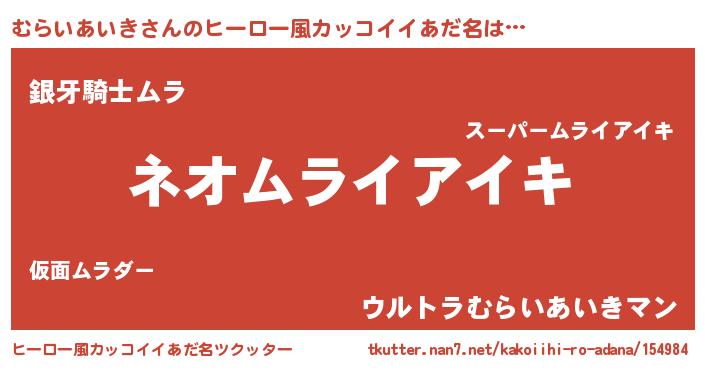 | ヘコむあだ名 | 『むらいあいき(小並感)』『むらっちょ』 |