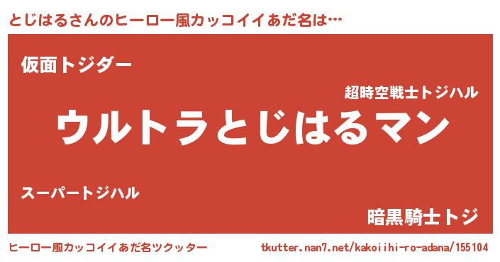 | 男性向けラノベタイトル風あだ名 | 『とじはるに滅ぼされるだけの簡単なお仕事です』 |