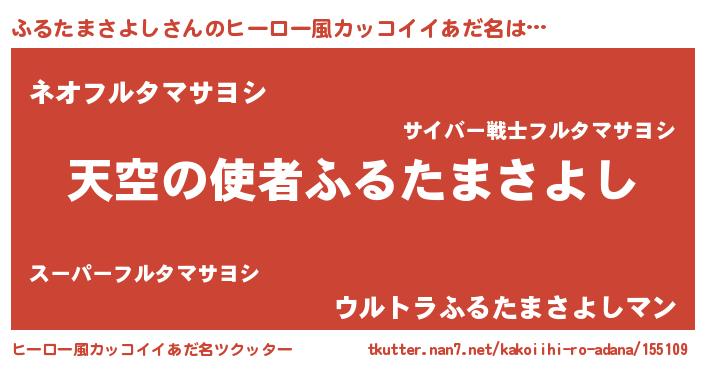 | 男性向けラノベタイトル風あだ名 | 『ノーゲーム・ノーフルタマサヨシ』 |