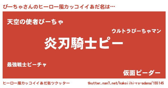 | 女子向けラノベタイトル風あだ名 | 『ぴーちゃ様がみてる』 |