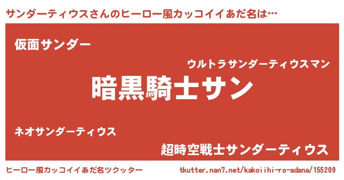 | 胡散臭い通販商品みたいなあだ名 | 『信頼と実績のサプリメント…その名も「サンダーティウス」』 |