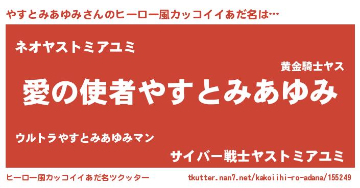 | ヘコむあだ名 | 『やすとみあゆみ(爆)』『やすっぺ』 |