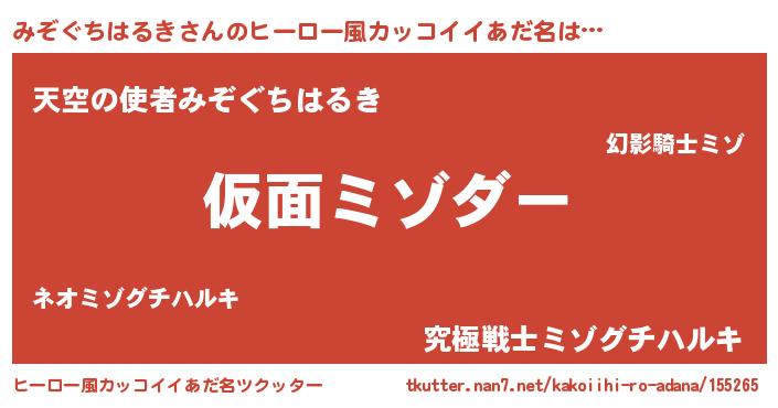 | 男性向けラノベタイトル風あだ名 | 『この素晴らしい世界にみぞぐちはるきを!』 |