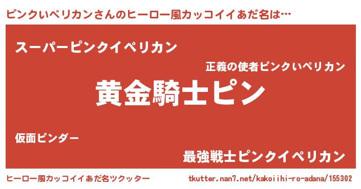 | 女子向けラノベタイトル風あだ名 | 『ピンクいペリカンは平凡を望む』 |